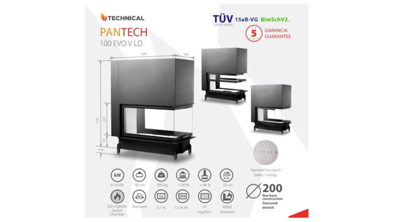 OverzichtPanTech EVO 100 V LD - 3 Zijdige haard met lifdeur